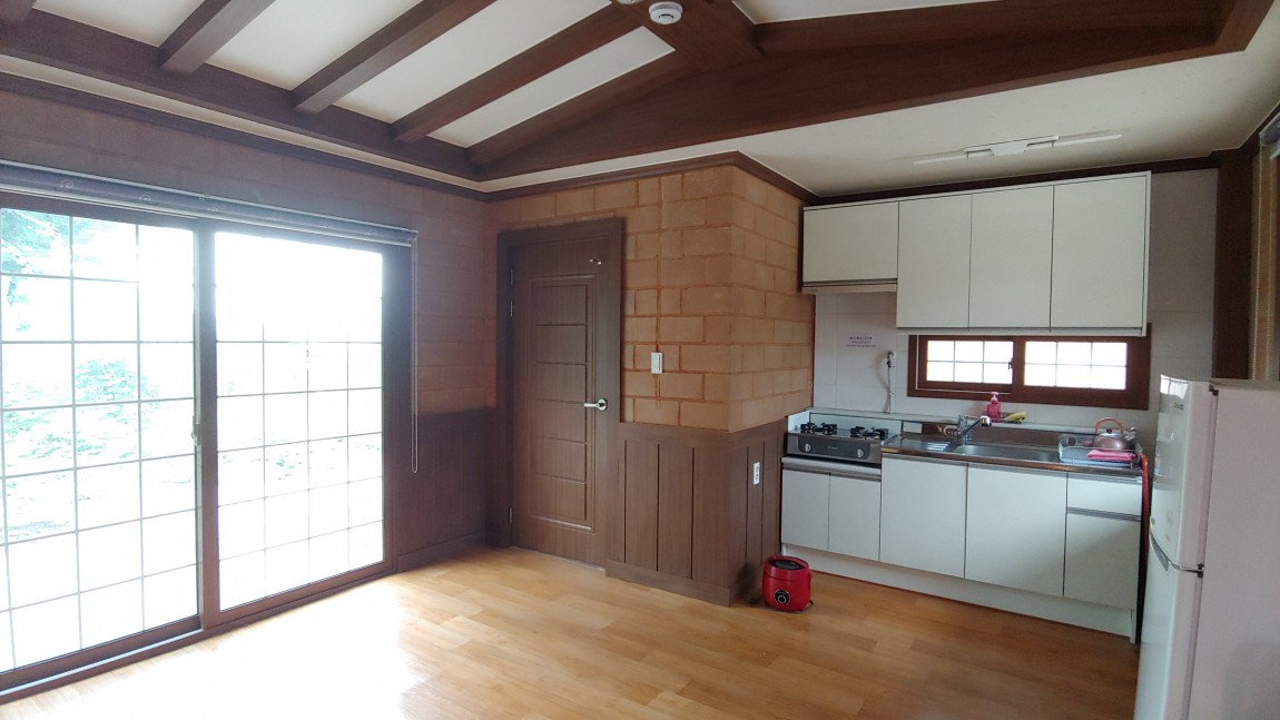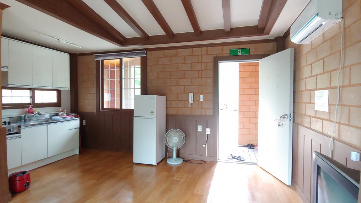 - 펜션 비품 : 에어컨, TV, 냉장고, 밥솥, 가스레인지, 식탁, 식기류, 선풍기, 이불, 쓰레기통, 빗자루 세트, 소화기