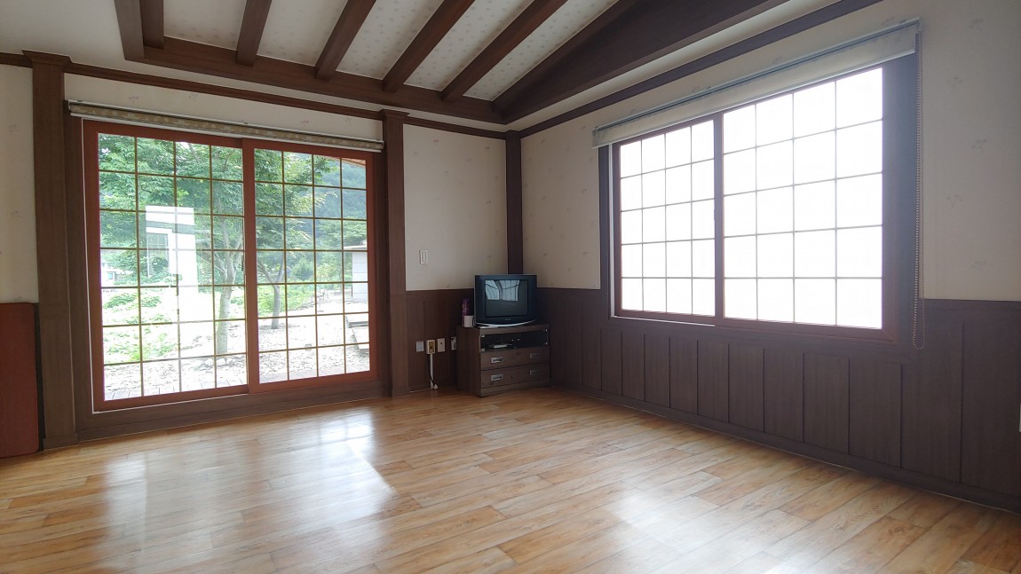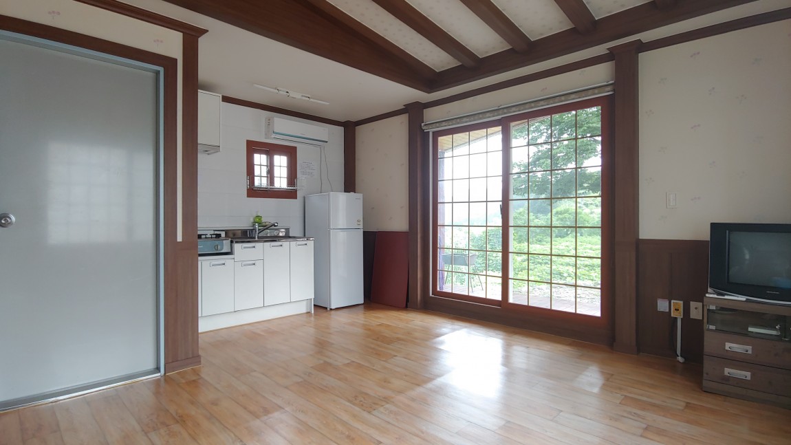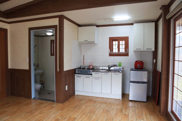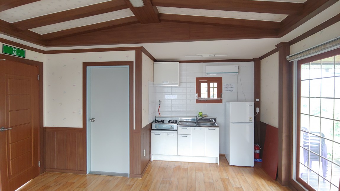 - 펜션 비품 : 에어컨, TV, 냉장고, 밥솥, 가스레인지, 식탁, 식기류, 선풍기, 이불, 쓰레기통, 빗자루 세트, 소화기