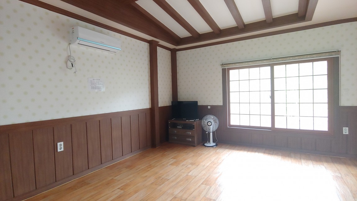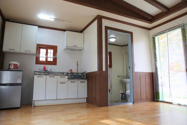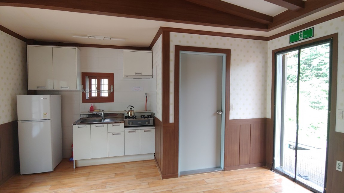 - 펜션 비품 : 에어컨, TV, 냉장고, 밥솥, 가스레인지, 식탁, 식기류, 선풍기, 이불, 쓰레기통, 빗자루 세트, 소화기